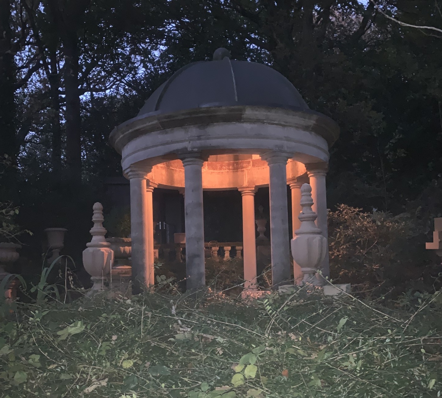 Handcrafted in Derbyshire, this cast stone garden temple framed by 8 columns is a striking centre piece for formal or secluded gardens.