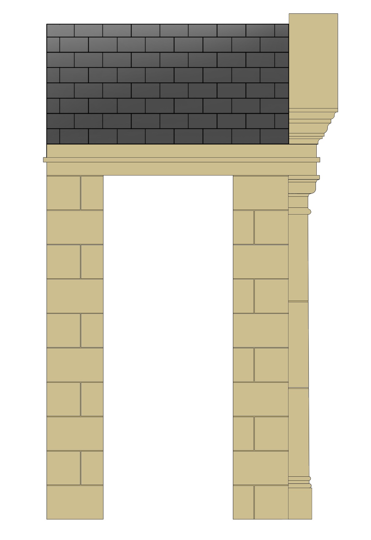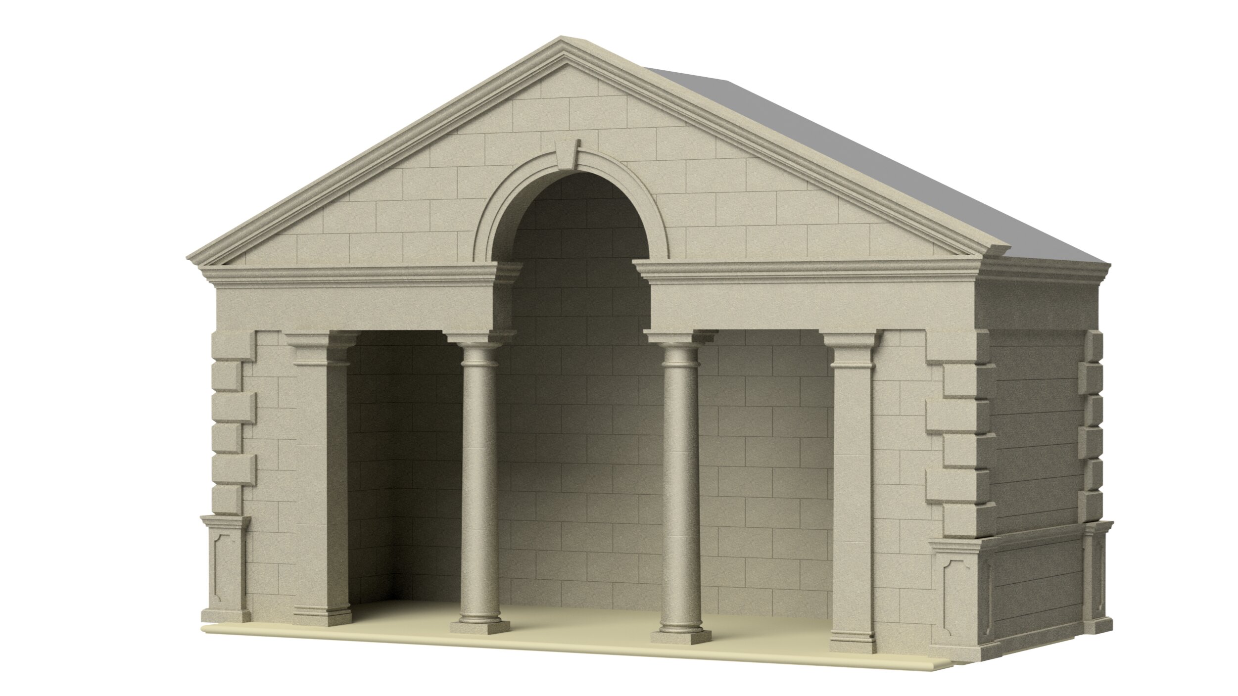 Customisable features may include columns, pilasters, quoins, flooring, steps, arches and a variety of roof styles including apex and sloped roofs.