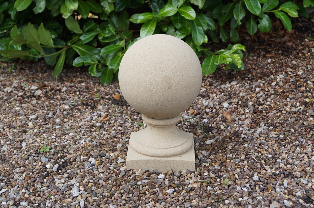 These cast stone balls on base for garden, pier caps, driveways or a simple feature. All stone balls come with a flat base for stability and have a hole underneath for pinning in place. The base is separate from the top ball.