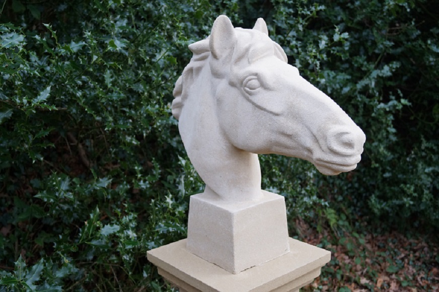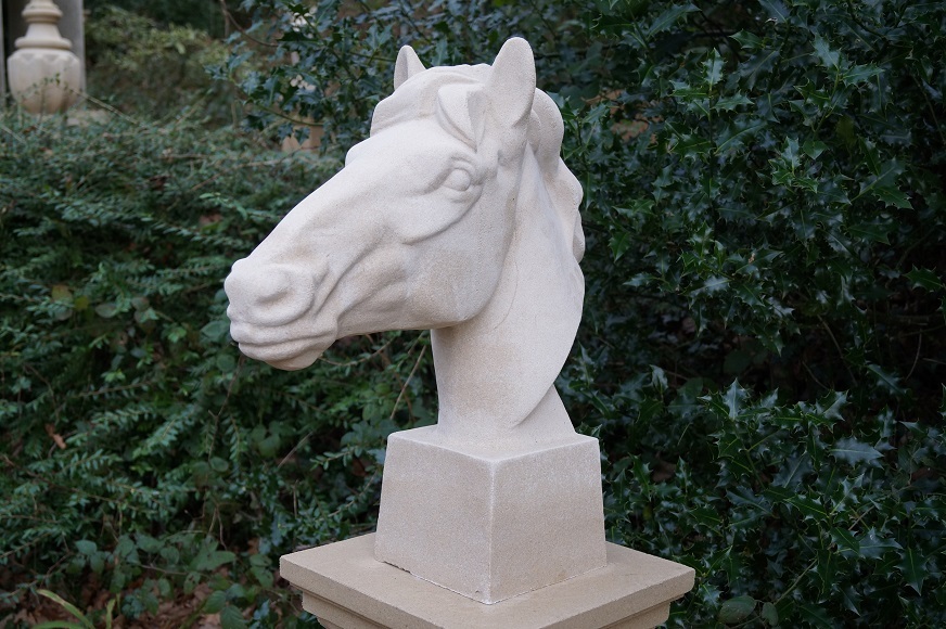 This stone horses head strikes an impressive pose from any angle, complimented by its unique slender plinth (sold separately).