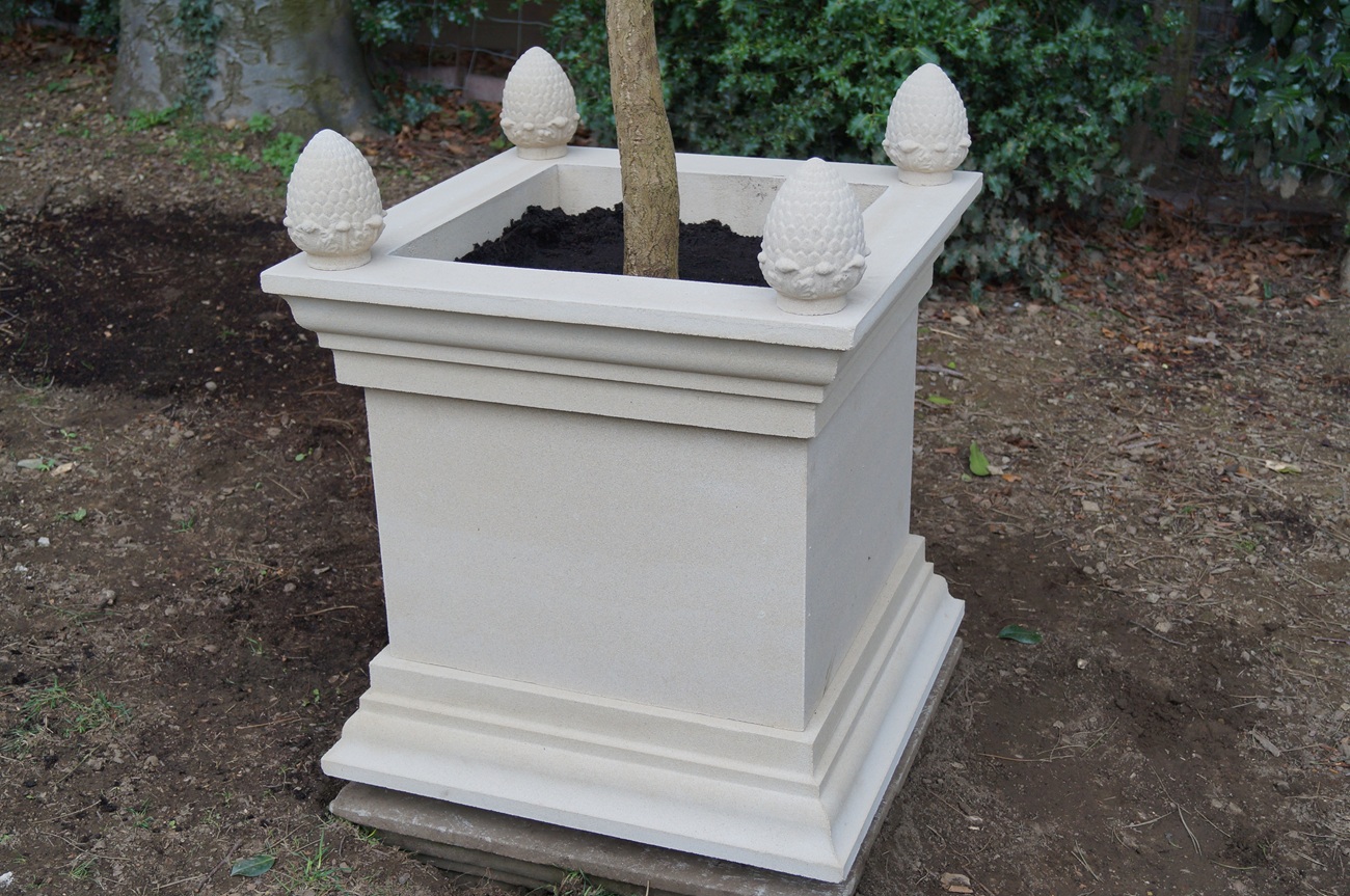 This Large Jardinere was designed to be striking in stature, capable of very large plantings and medium sized trees. It comes in sections for ease of installation, complete with drainage holes in base.