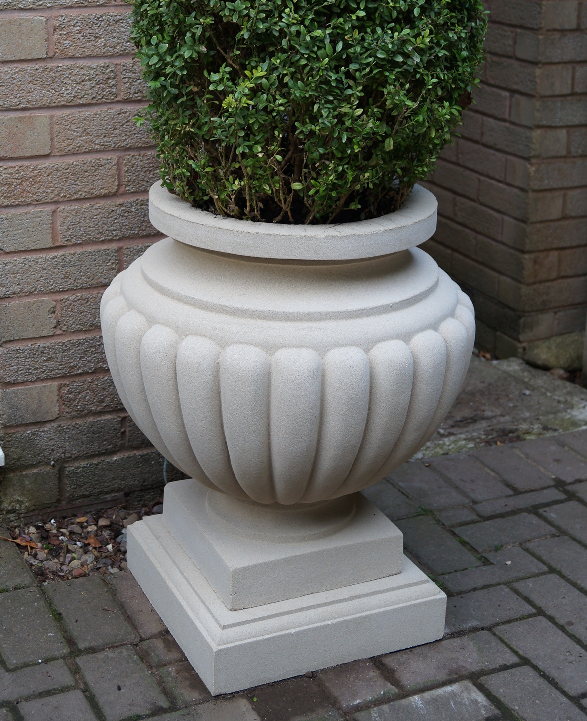 The Retford Vase features crisp carving to the rim with the main body gadrooned down to the base. Suitable for medium sized plantings.
