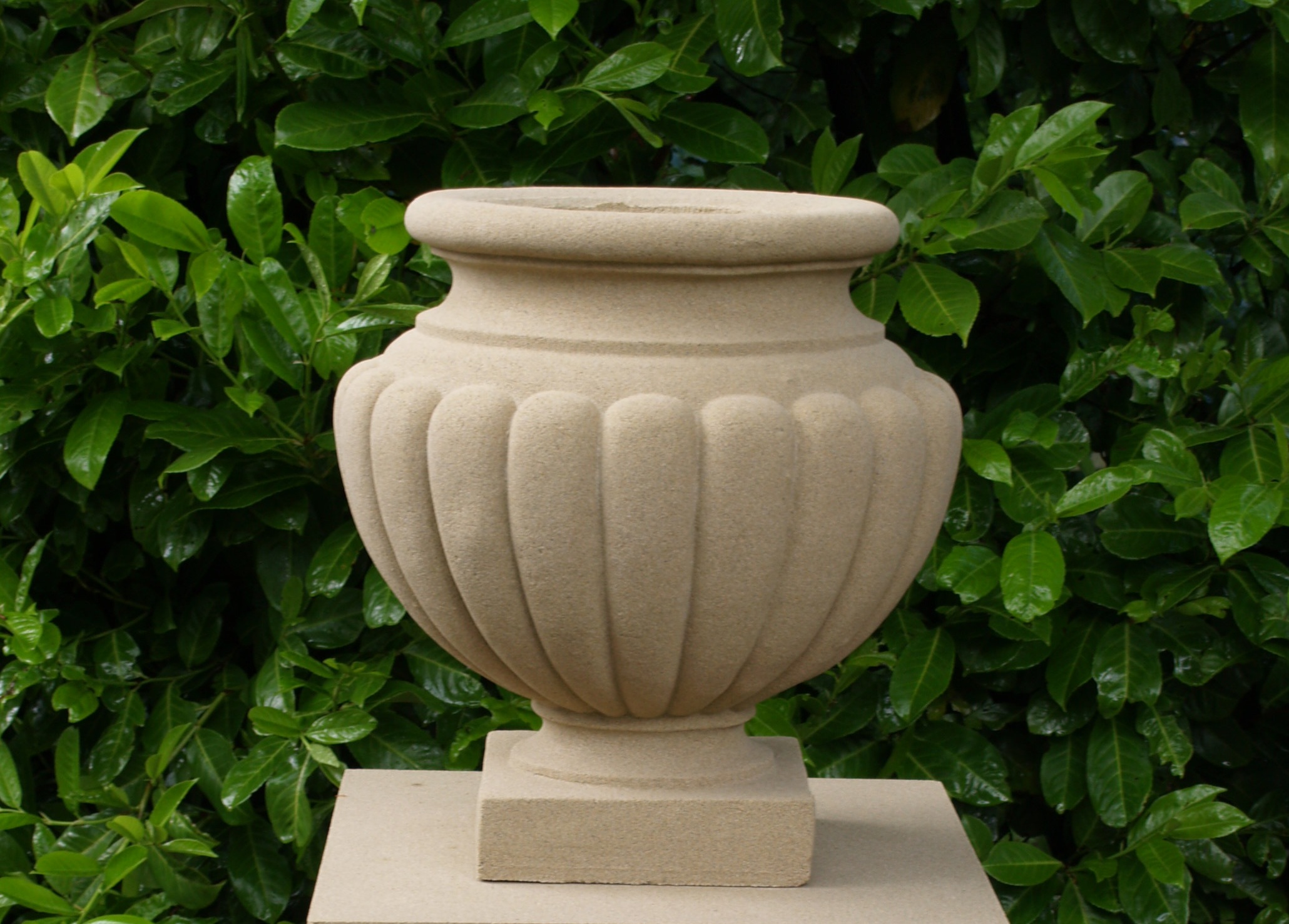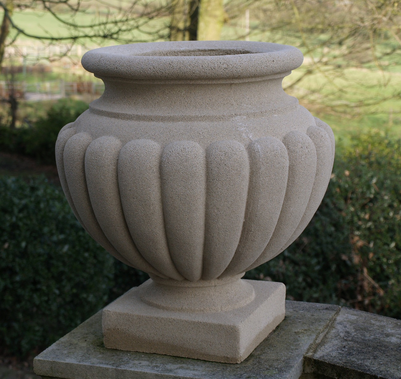 The Retford Vase features crisp carving to the rim with the main body gadrooned down to the base. Suitable for small to medium sized plantings.